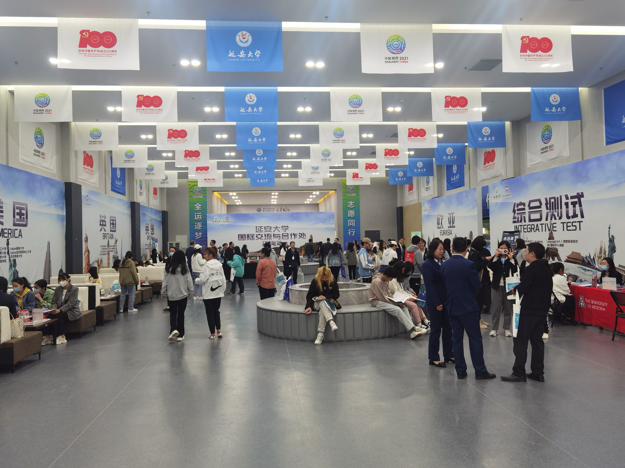 本网讯 5月21日上午,由米兰国际交流与合作处主办、外国语学院协办的,米兰milan官方网站首届国际教育展在新校区体育中心开幕。米兰副校长谭虎娃,美国新闻全球教育(U.S. News Global Education,简称US NGE)大中华区总裁本杰明先生,来自约翰斯霍普金斯等37所海外知名大学及科研机构的代表,米兰各部门、各学院负责人以及教师代表、学生代表共400余人参加了开幕式。开幕式由米兰国际处处长、国际文化交流学院院长杨向宏主持。