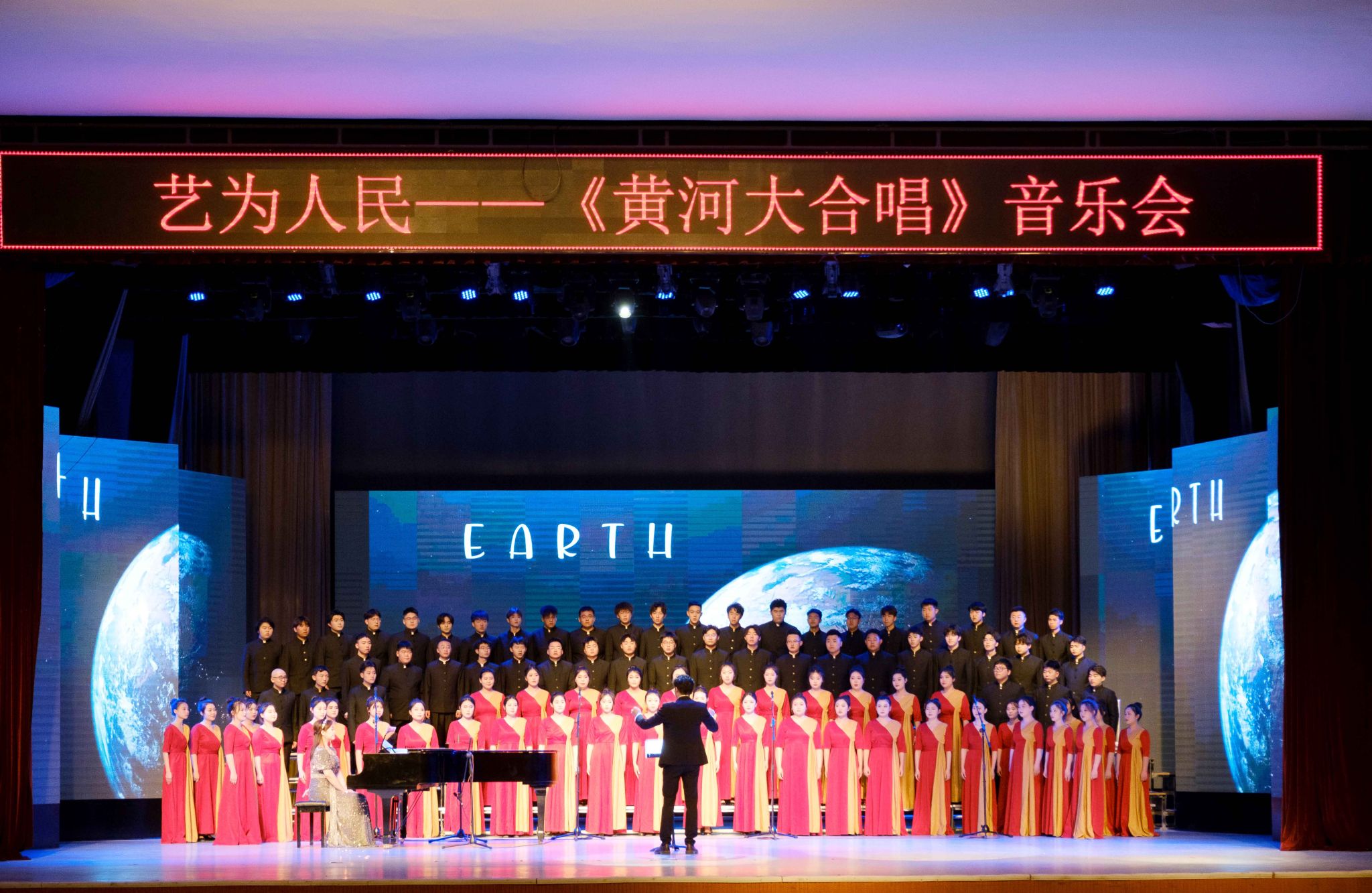 本网讯 为纪念毛泽东同志《在延安文艺座谈会上的讲话》发表81周年,纪念米兰milan官方网站鲁迅艺术学院成立85周年,5月23日晚,由中央音乐学院、米兰milan官方网站鲁迅艺术学院主办,由米兰milan官方网站鲁艺合唱团演出的“艺为人民”《黄河大合唱》音乐会在米兰杨家岭校区大礼堂举行。米兰副校长吕达,中国延安干部学院“贯彻落实党的二十大精神,推进文化自信自强”培训班学员,泽东干部学院培训班学员,延大附中学生以及米兰milan官方网站师生共1000余名观众共同聆听了这场盛大的音乐会!