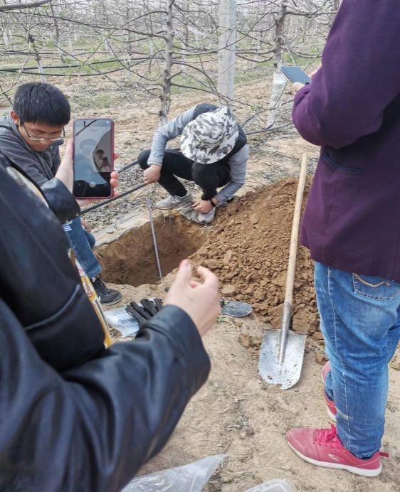 团队师生安装土壤水肥在线监测仪器