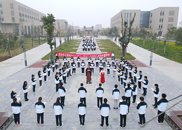 活动中,全体师生肃整衣冠,以至诚感恩之心向孔子像行三鞠躬礼:一鞠躬,感恩先师度厄克艰,论著经典;二鞠躬,感恩先师言传身教,长善救失;三鞠躬,感恩先师学成古今,立范后世。随后,数计学院千名学子在校园内诵读《论语》。“吾日三省吾身:为人谋而不忠乎?与朋友交而不信乎?传不习乎?”“博学而笃志,切问而近思,仁在其中矣。”“见贤思齐焉,见不贤而内自省也。”等耳熟能详的儒家经典响彻校园。