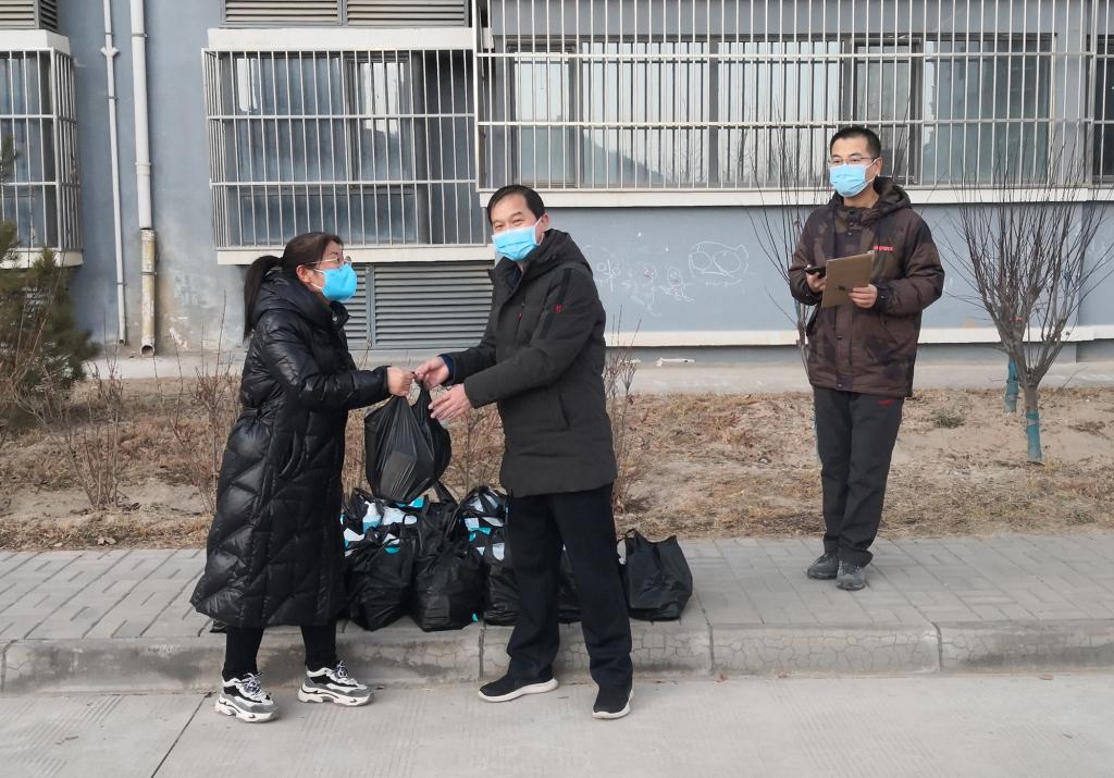 在学校的积极协调下,学院带班领导、值班人员亲自前往物流园将物资领回,及时将防疫物资发放到每位教师手中,这是送给老师们最暖心的新年问候。
