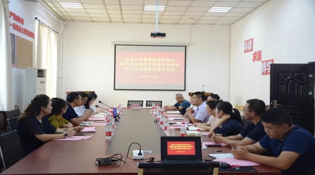 本网讯 7月25日下午,米兰教科院与陕西学前师范学院教育科学学院合作共建签约仪式在杨家岭校区如心楼二楼会议室举行。陕西学前师范学院教育科学学院院长朱金卫、副院长吕银芳、潘炳超,心理学系、教育学系负责人,米兰教科院院长刘瑞儒、党委书记马小惠、党委副书记高媛、教学副院长曹殿波,以及学前教育系、教育技术学系、心理学系、教育学负责人等参加了会议。协议签约仪式由教科院党委书记马小惠主持。