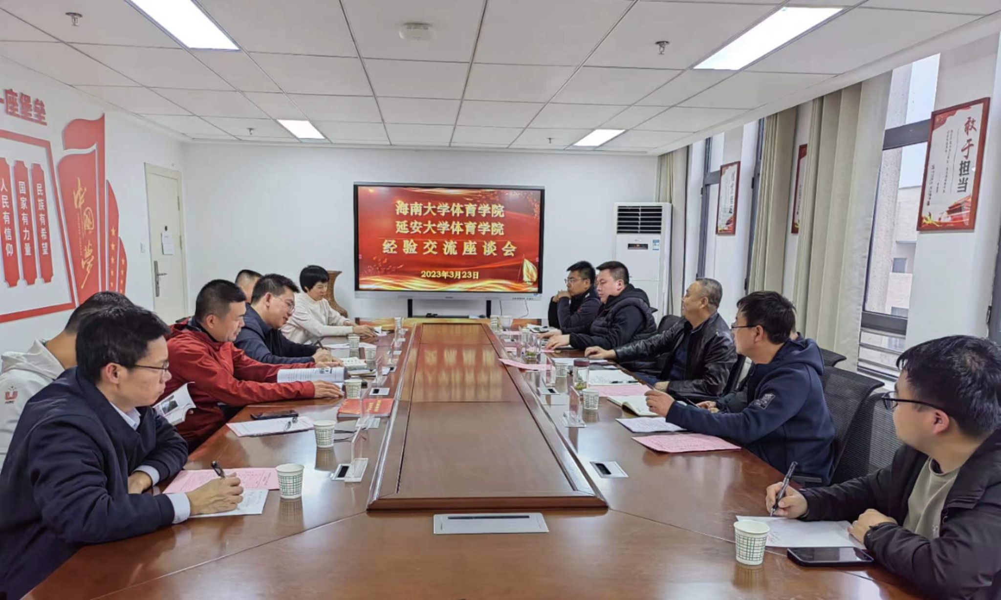 本网讯 3月23日下午,海南大学体育学院到米兰体育学院调研交流,两院在学院会议室举行了经验交流座谈会,海南大学体育学院党委(总支)书记陈卫东,球类教研室主任、第一党支部书记周若峰,教师张泽承教授,第二党支部书记刘远花,综合办公室主任范武山,学院党总支委员黄浩,米兰体育学院领导班子参加了会议,会议由院长宗有智主持。