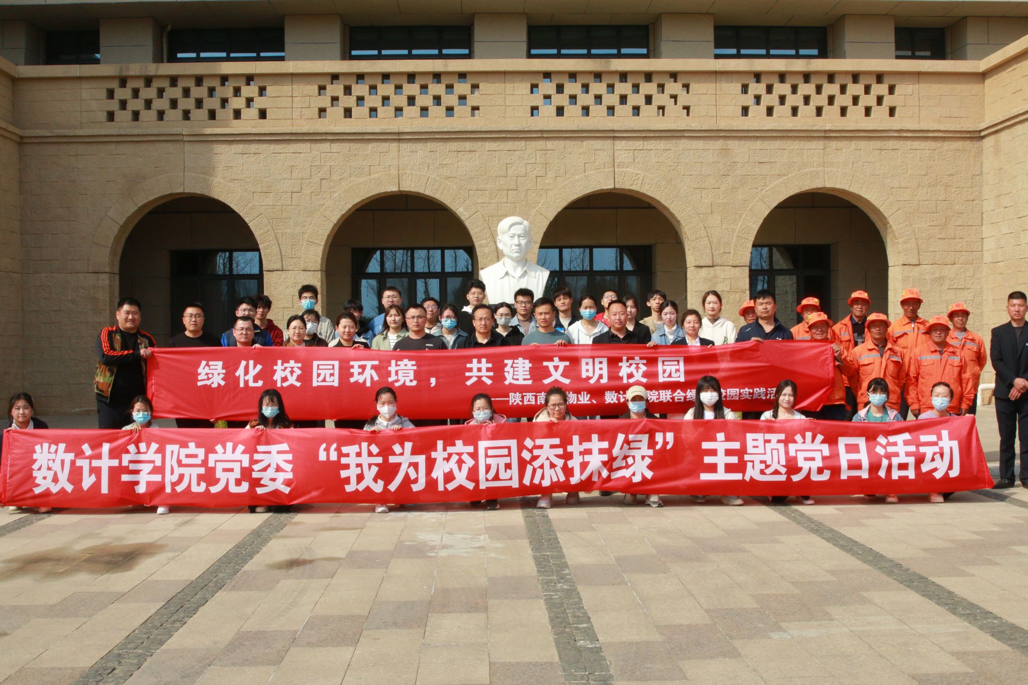 本网讯 为深入贯彻落实党的二十大精神,进一步推进生态文明建设,践行劳动教育,建设美丽校园,3月30日下午,数计学院党委与陕西南科物业服务有限公司在信息大厦周边开展“我为校园添抹绿”主题党日活动。教师党支部、学生党支部80余名党员与南科物业工作人员20余人参加活动。