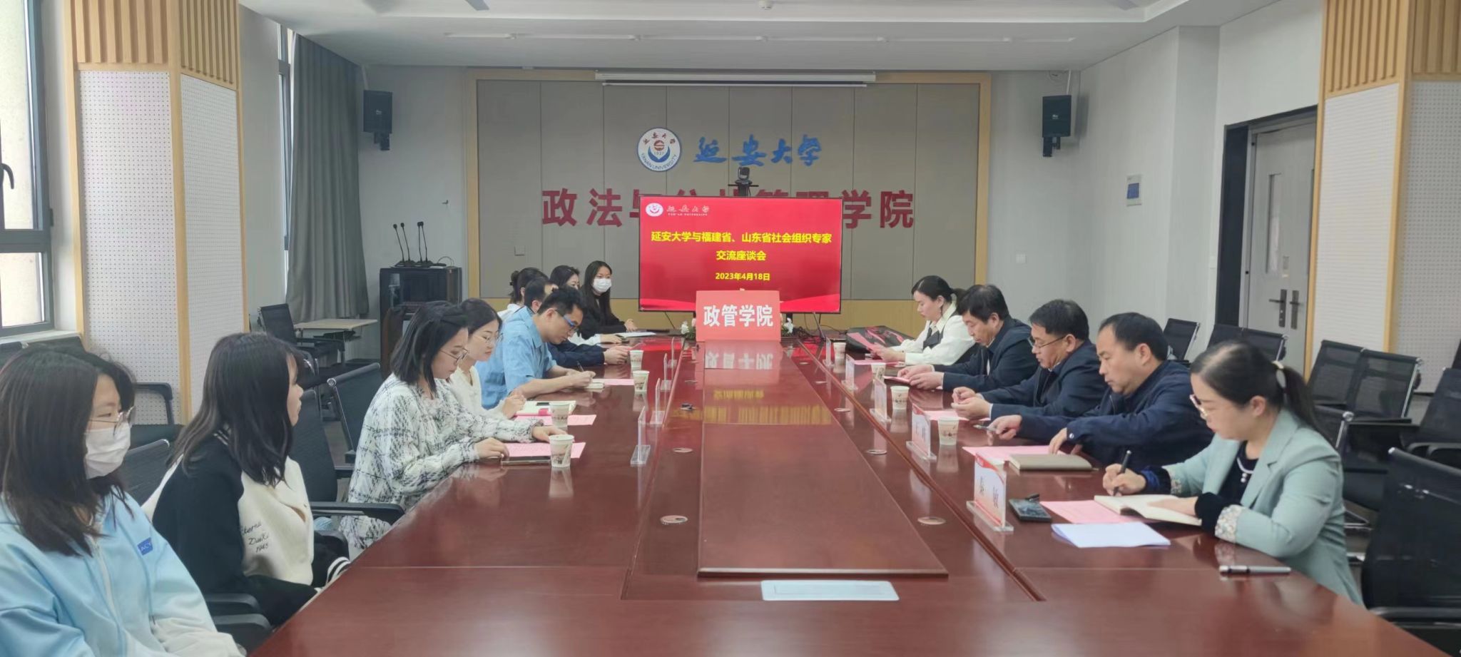 本网讯 4月18日上午,全国青联常委、民政部慈善事业和社会工作标准化技术委员会委员、福建致和社会组织孵化与创新中心主任夏晋城,福建省宁德市屏南县善课堂服务中心理事长胡廷枫,山东省济南市善诺社会工作服务中心行政主任赵昕羽等一行4人来米兰政法与公共管理学院进行交流座谈。米兰milan官方网站教务处处长吕磊,政管学院院长冯志宏,副院长王峰、秦敏,社会学系主任王佳及社会工作专业部分学生参加了交流座谈会。