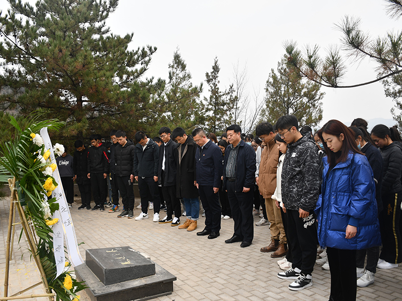 校团委书记刘江、路遥研究会副会长袁广斌向路遥墓敬献了花篮,全体师生在路遥墓碑和雕像前鞠躬、默哀,绕墓缓行一周,缅怀这位为文学发展不断贡献一生的伟大作家。