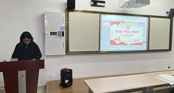 学生党员代表杜鸿钿发言。他提到:“学习四史是进行自我净化,自我完善,自我革新,自我提高,学就要有收获,学就要有感触,把这种学习变为常态,每当遇到挫折时,就看看革命先烈们保家卫国,舍生忘死的爱国精神,学习前人艰苦奋斗的工作作风。生活在这个和平的年代里,我们不能忘记了历史,不能忘记了过去艰苦的生活。”新时代下,我们已经完成脱贫攻坚任务,全面建成小康社会,我们即将迎来第一个百年奋斗目标,我们要继续努力奋斗,向着新四个全面发起进攻,作为新时代青年,我们要有理想,有担当,有作为,最重要的是做好现阶段的任务,完成大学学业,扎实学习,勤加锻炼,继承发扬前人之志,为新时代建设社会主义现代化国家而努力奋斗。
