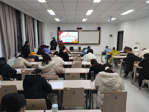 此次考试由学院党委常务副书记兼行政副院长张彬老师担任巡考,由党委副书记赵海龙老师、辅导员闫莉莉老师以及学生党支部全体成员监考,考试时间90分钟,共32名拟发展对象参加。