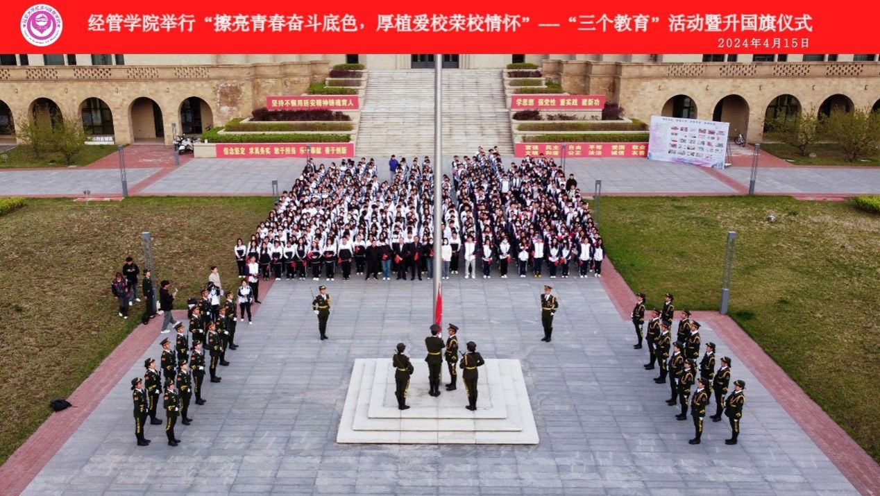 本网讯 为进一步深化大学生对理想信念、青春奋斗、爱校荣校、宿舍文明的认同和实践,按照学校《弘扬延安精神、厚植爱校情怀,助力更有特色更有水平大学建设实施方案》部署要求,围绕“八个延大”建设, 4月15日,经管学院特开展“擦亮青春奋斗底色,厚植爱校荣校情怀”——“三个教育”活动暨升国旗仪式。学院领导、全体辅导员、班主任以及师生代表共计1000余人参加。活动由辅导员魏玮主持。